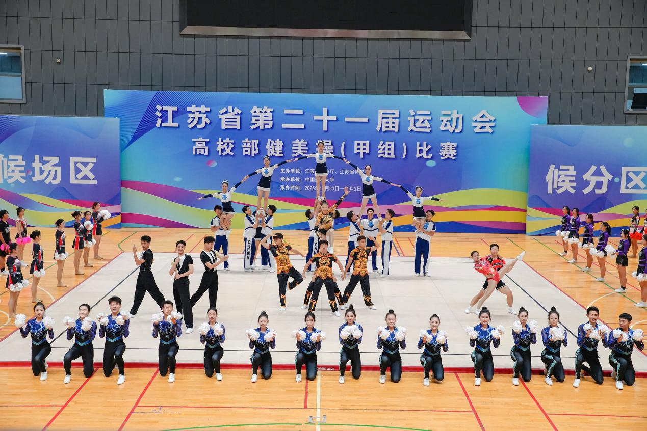 2025年10月30日-11月2日,作为江苏省规格最高、规模最大的大学生体育赛事--江苏省第二十一届运动会高校部健美操(甲组)比赛燃情开赛!来自全省32支队伍近500名运动员齐聚赛场,以灵动舞姿展现青春活力,用默契配合诠释运动精神,共同呈现了一场高水平的健美操竞技盛宴。