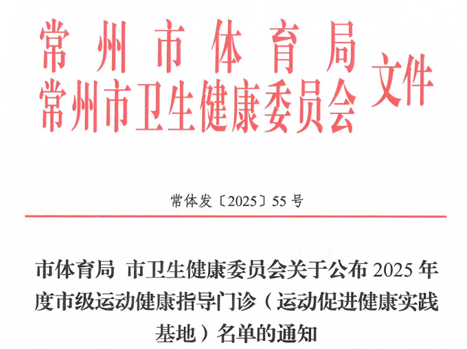 近日,常州市体育局、常州市卫生健康委员会联合印发《关于公布2025年度市级运动健康指导门诊(运动促进健康实践基地)名单的通知》(常体发〔2025〕55号),经项目单位自愿申报、专家评审等严格程序,江苏理工学院成功获批“常州市运动促进健康实践基地”单位,这是学校在运动健康领域产学研融合发展的重要成果,标志着学校在推动运动与健康深度融合、服务地方公共卫生事业方面迈出了坚实步伐。