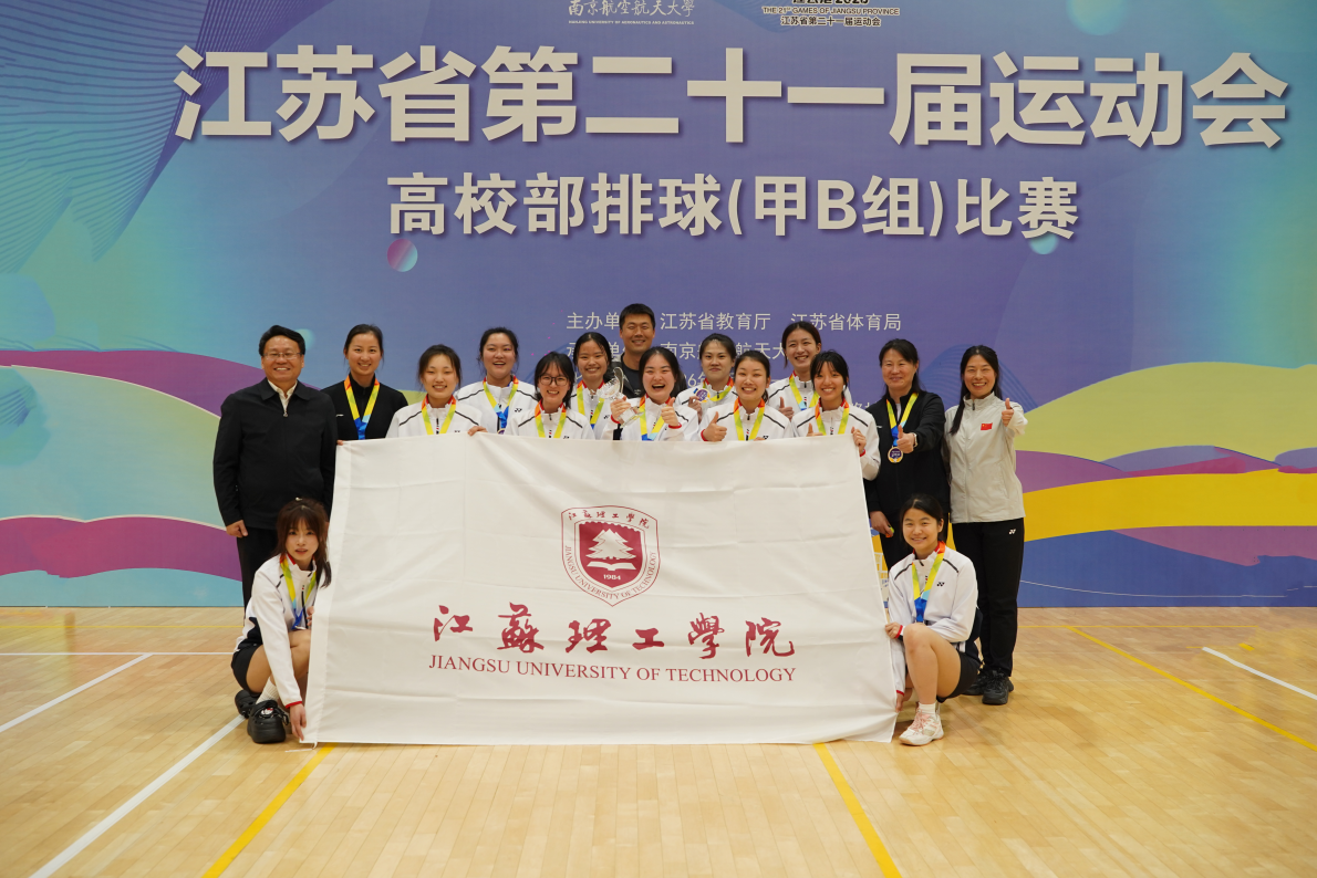 2026年4月8日至14日,江苏省第二十一届运动会高校部排球(甲B组)比赛在南京航空航天大学顺利举办。我校女子排球队在教练员章茹、严鑫老师的带领下,历经多轮激烈角逐,最终斩获甲B组女子亚军,创下我校女排在该赛事中的最佳战绩。